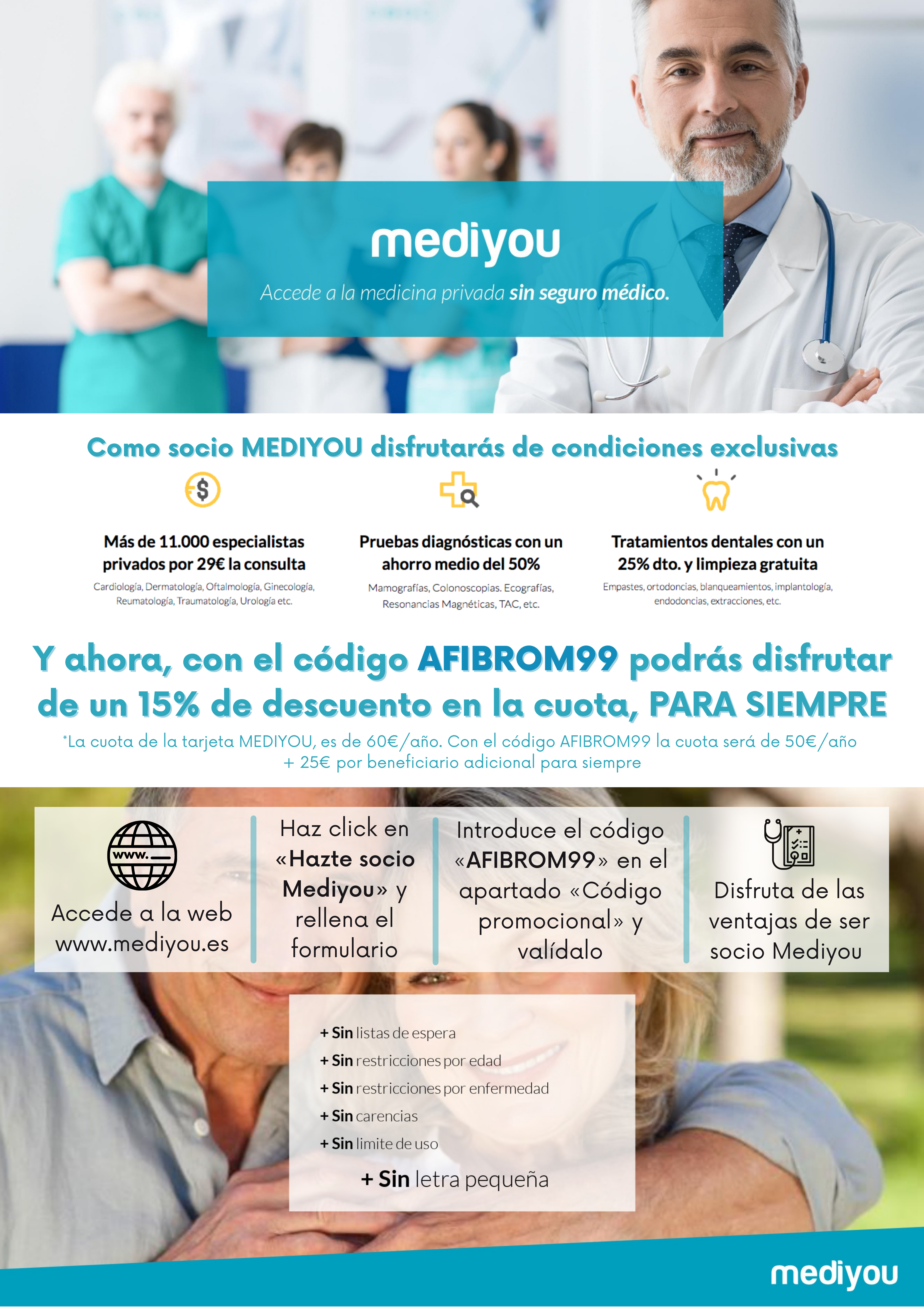 AFIBROM firma, por todas estas ventajas, un convenio con MEDIYOU que funcionará de la siguiente forma: