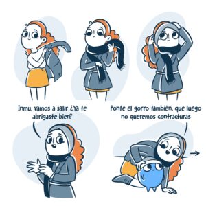 Y comencé a recibir muchas respuestas. Algunos amigos y familiares me recordaban anécdotas que había olvidado y que podría contar en la siguiente tira. Entonces descubrí que yo misma había puesto una barrera de autodefensa para no hundirme en la depresión y simplemente las había borrado de mi memoria. Pero hacer los estos cómics me permitió recordarlas, procesarlas, y replantearlas con algo de humor. Ahora hacer esto se ha convertido en mi psicoterapia y desfogue. Y ese es nuestro principal problema, que nos tragamos todo.