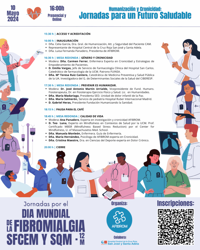 Como cada año con motivo del Día Mundial de la Fibromialgia, en el continuo esfuerzo por ofrecer un espacio de reflexión y aprendizaje en el ámbito de la salud, AFIBROM se prepara para recibir a profesionales de la medicina, expertos en salud pública y pacientes en sus próximas jornadas, tituladas “Humanización y Cronicidad: Jornadas para un Futuro Saludable”, que se llevarán a cabo el próximo 10 de mayo en un formato híbrido, tanto presencial como online.