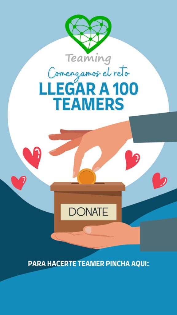 Teaming es una herramienta online que facilita la recaudación de fondos para causas sociales mediante microdonaciones de 1€ al mes. La filosofía de Teaming se basa en la idea de que, aunque 1€ por sí solo no parece mucho, cuando nos unimos, podemos lograr cosas extraordinarias.